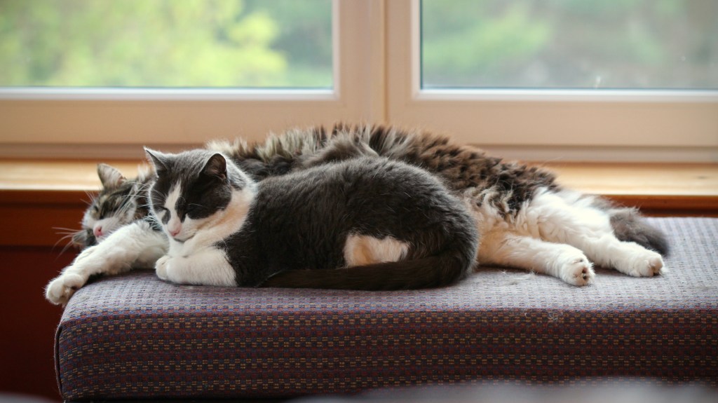 He was great at relaxing. I could’ve learned a thing or two from him. Indeed, occasionally, very occasionally,  I was tempted to take a nap in the afternoon sun after seeing him stretched out on the window sill or on the ottoman in a sunbeam.