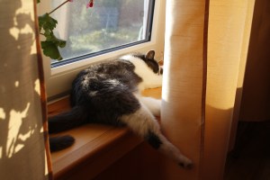 He was great at relaxing. I could’ve learned a thing or two from him. Indeed, occasionally, very occasionally,  I was tempted to take a nap in the afternoon sun after seeing him stretched out on the window sill or on the ottoman in a sunbeam.