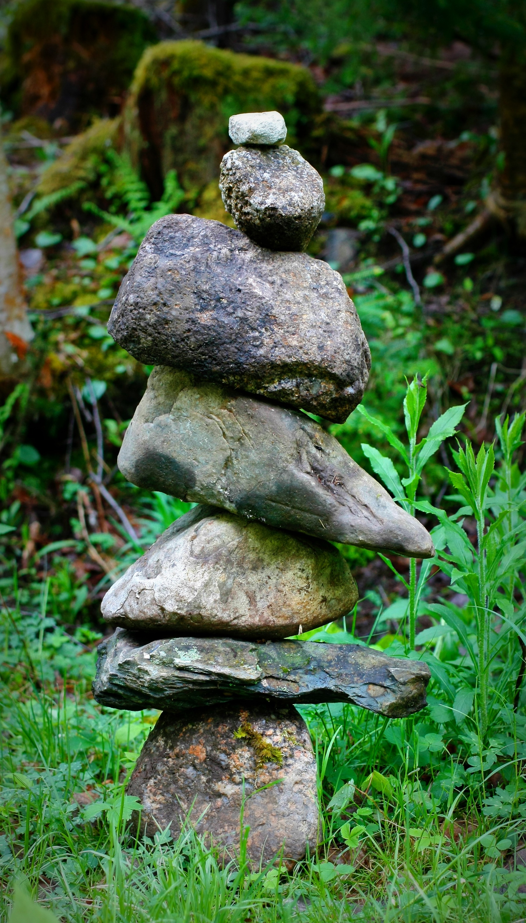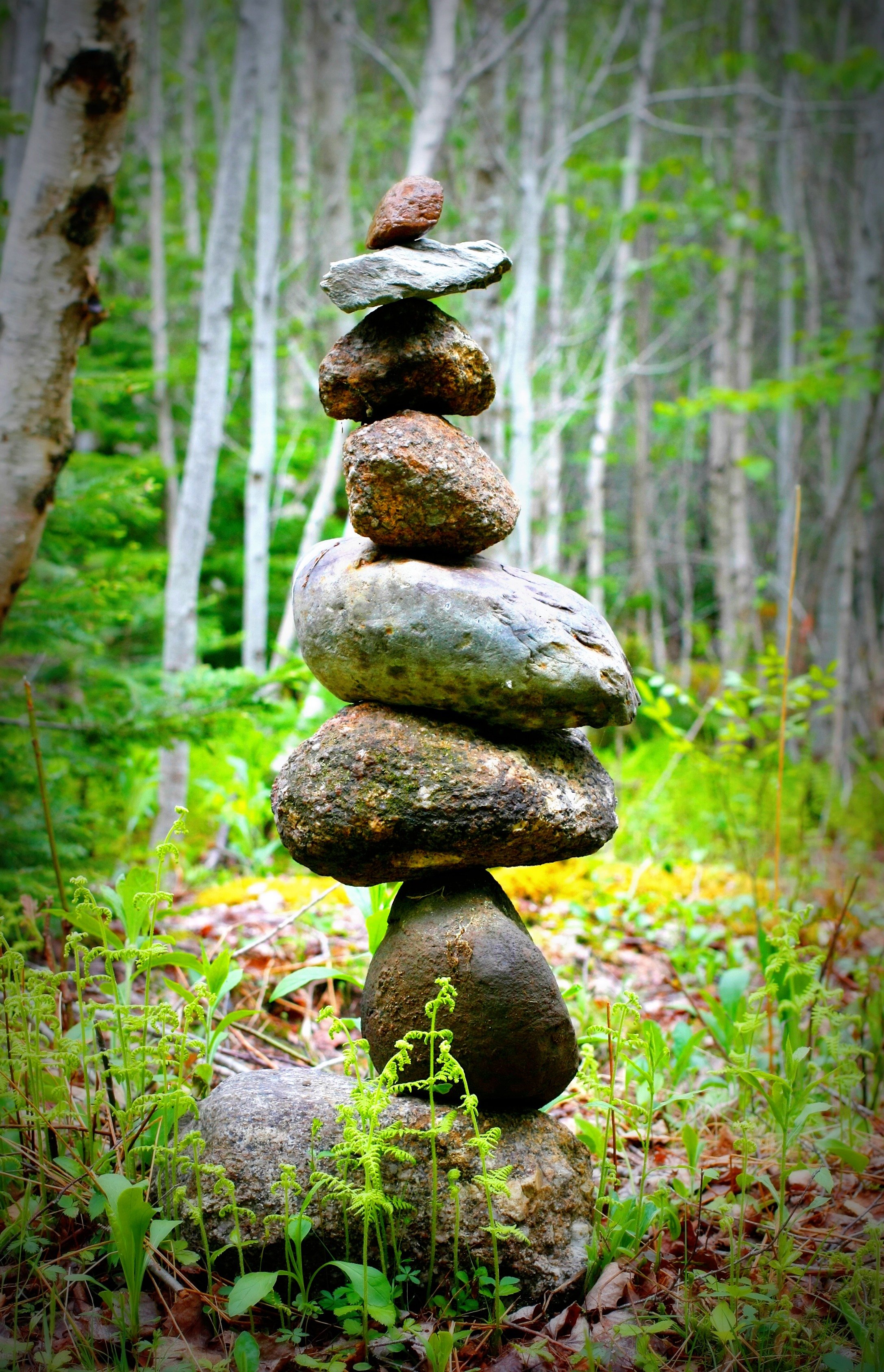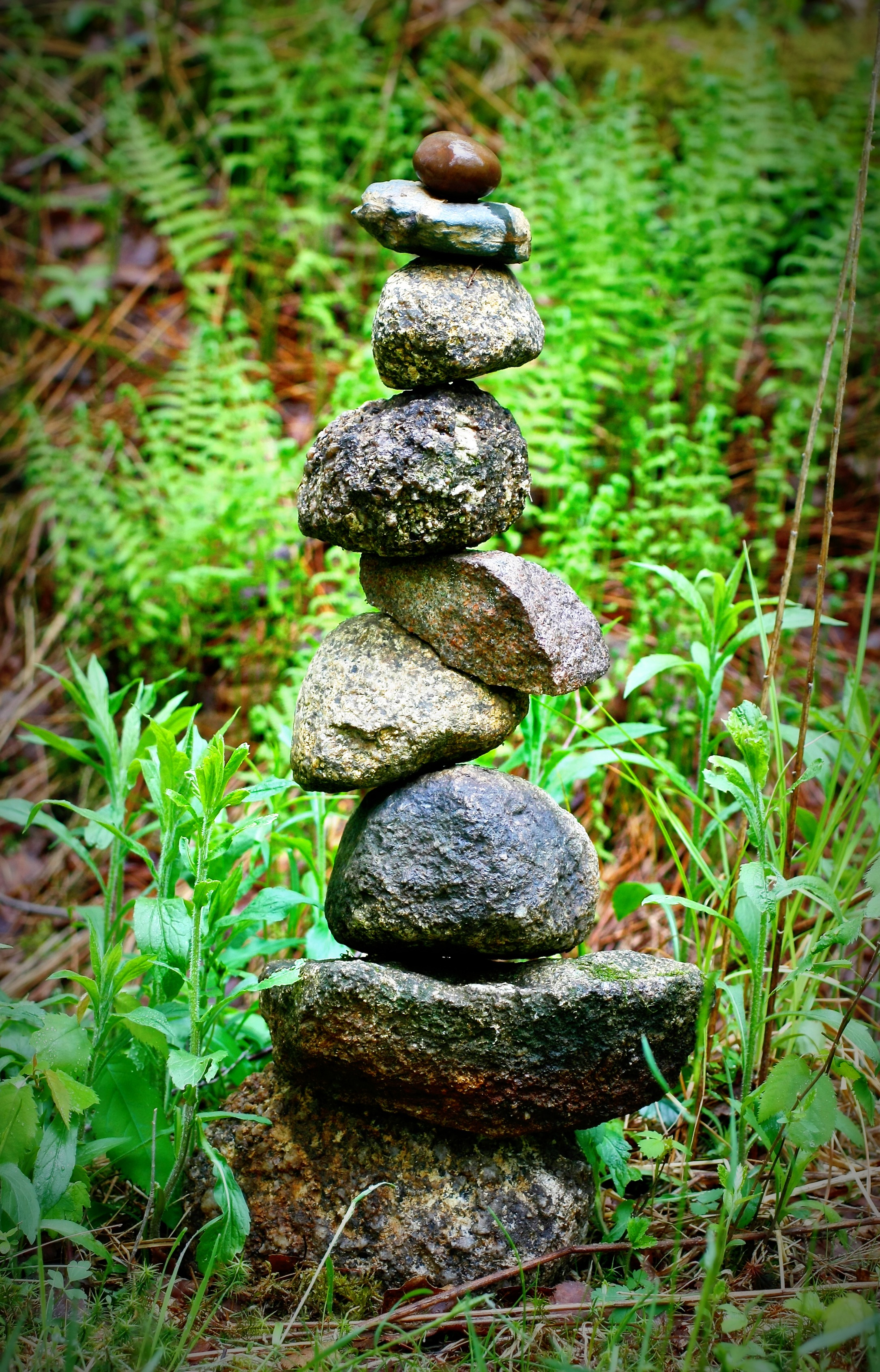 On the way I stopped by the pond, walked around the small stone circle I have there, saw a turtle slip into the water, then re-stacked some of my rock piles along the trail.